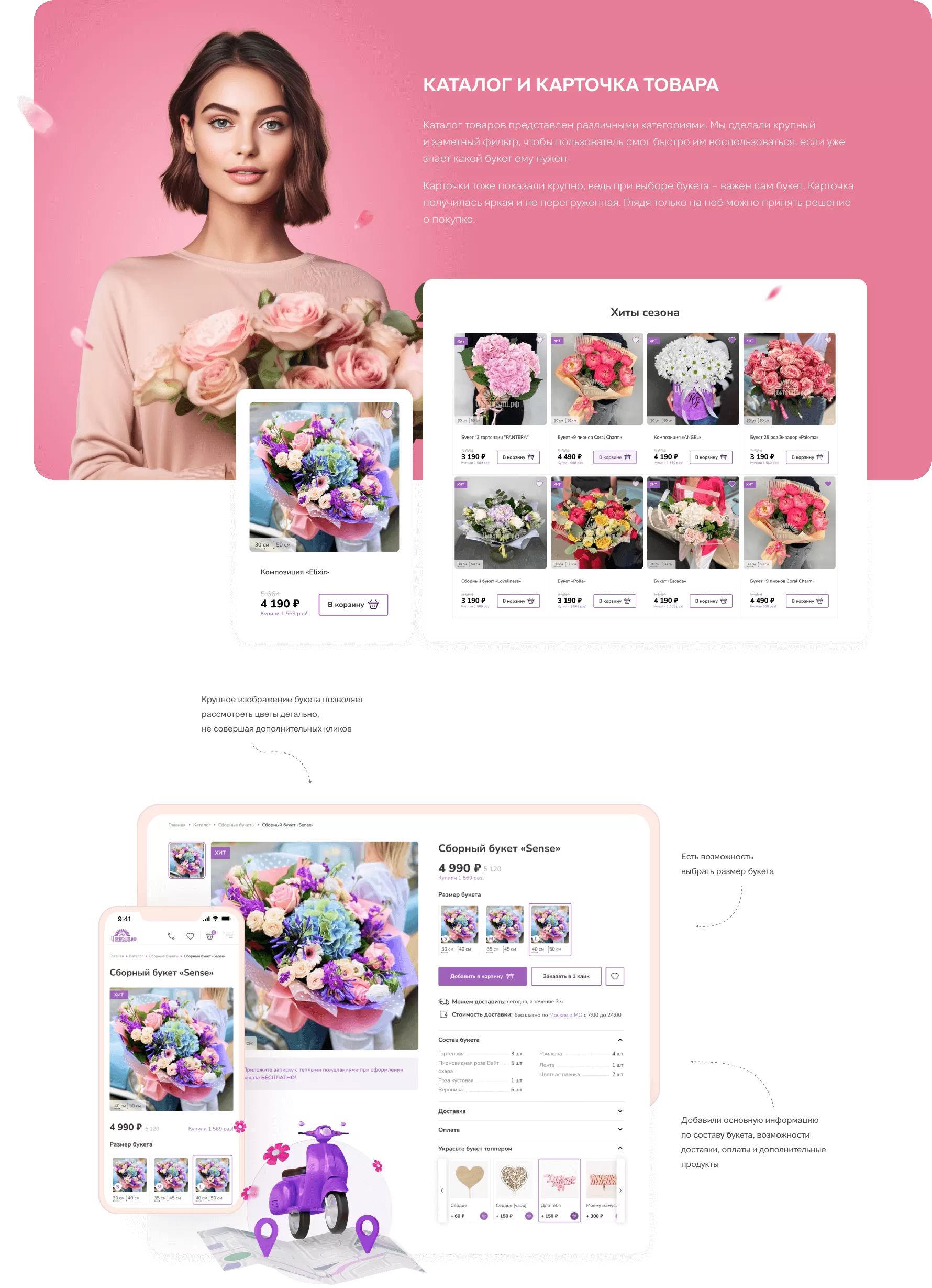 Сделали редизайн сайта для цветочной торговой сети с простыми интуитивно понятным интерфейсом