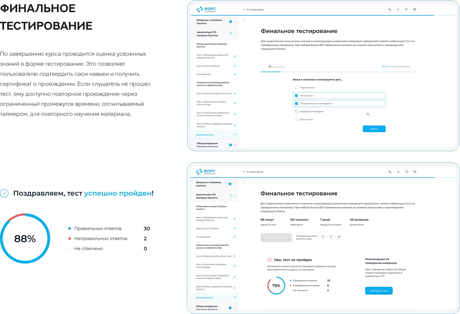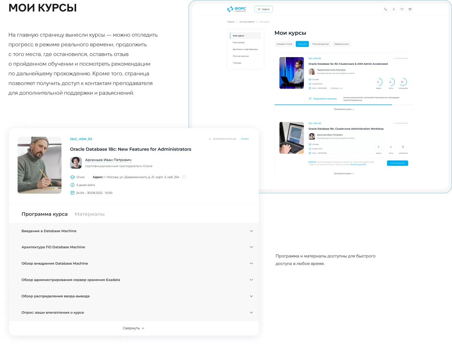 Разработали топовый личный кабинет, ориентированный на сферу B2B. Фишка личного кабинета в том, что он позволяет отслеживать эффективность прохождения сотрудниками курсов. Система проста и удобна в использовании.
